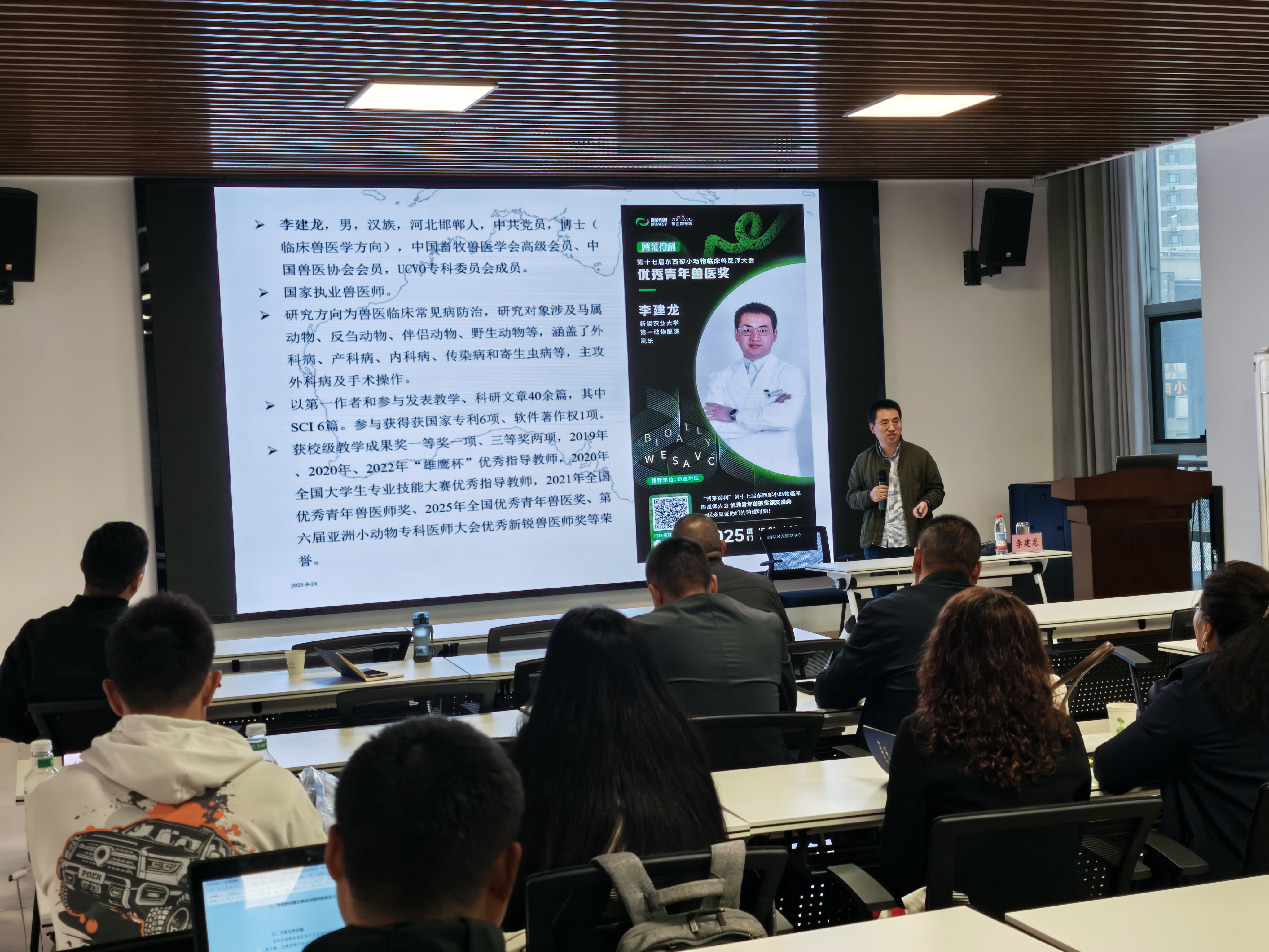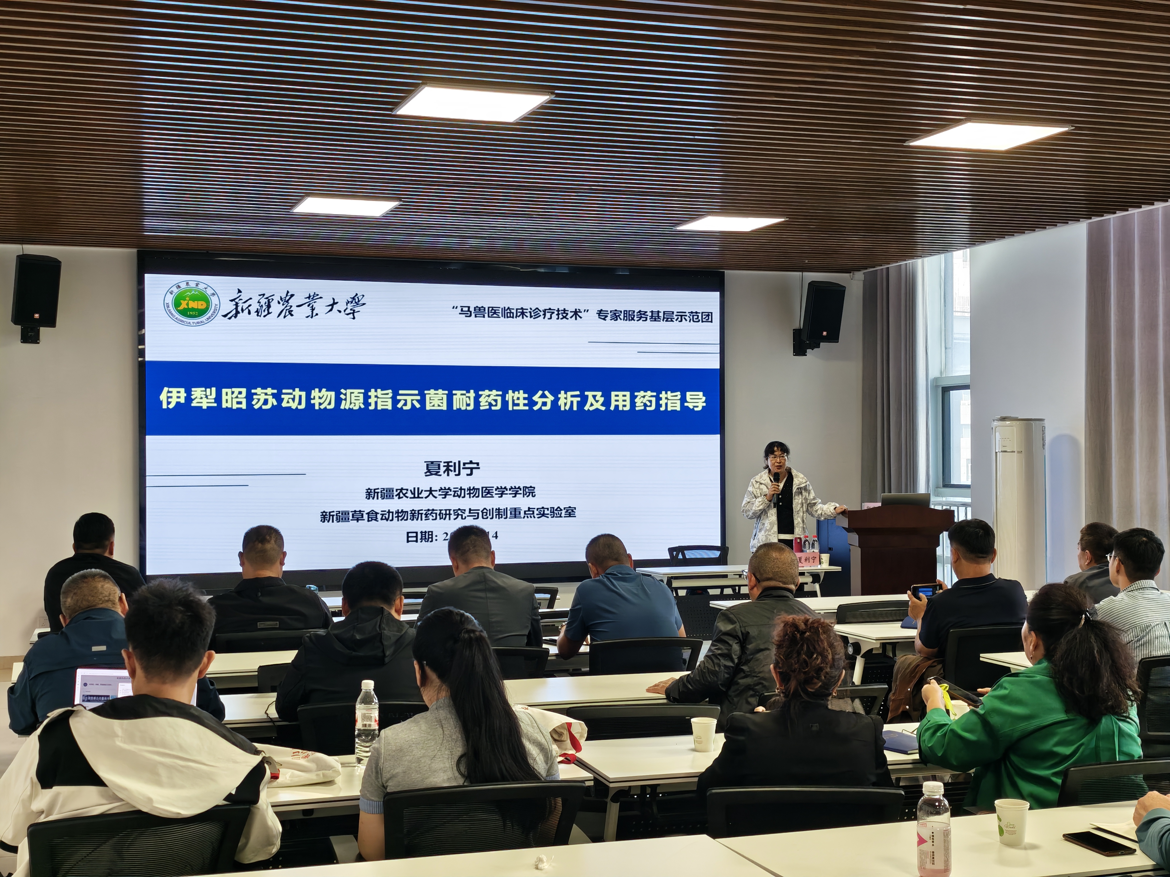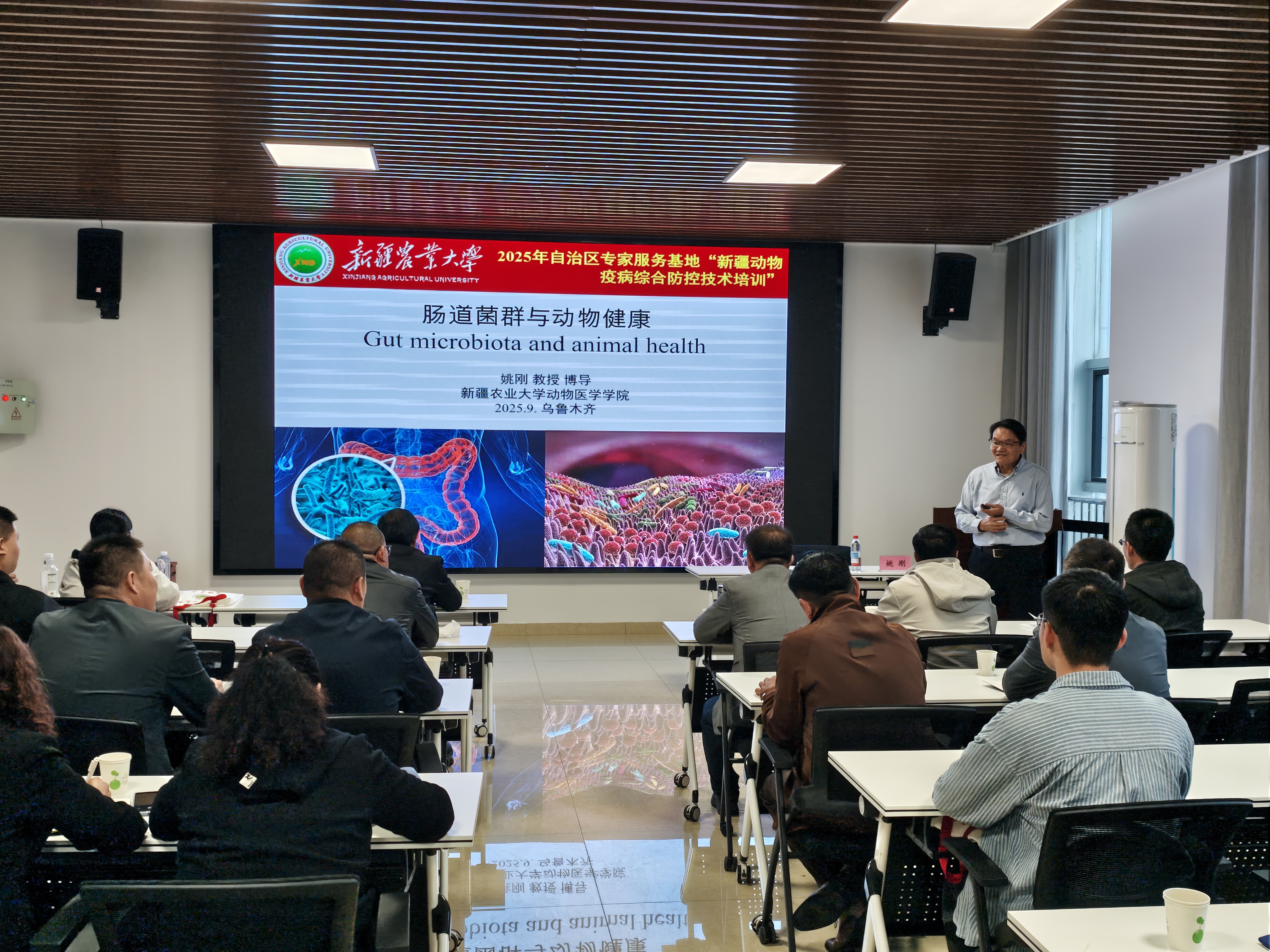 开幕式后,为期五天的密集培训正式展开。授课师资阵容强大,涵盖高校教授、行业专家及技术骨干:22日上午,郭庆勇院长以“国内外兽医教育”为主题开启首讲;当日下午,动物医学学院夏利宁教授围绕“畜禽用药及细菌耐药性”展开专业解读;23日下午,动物医学学院冉多良教授带来“畜牧业发展分析”专题分享;24日上午,新疆农业大学第一动物医院院长李建龙博士深入讲解“马急腹症的治疗与诊断”技术要点,当日下午,动物医学学院姚刚教授聚焦“肠道菌群与动物健康”传递前沿知识;25日上午,乌鲁木齐动物疾病控制与诊断中心李爱巧主任结合实践经验,阐述“实验室检测技术在动物疫病防控中的应用”;同日,中国农业科学院特产研究所赵传芳研究员针对“犊牛腹泻病因调查及综合防治”开展专题培训;26日,畜牧科学院兽医研究所钟旗研究员详解“牛羊布鲁氏菌病、结核病防控”关键技术。