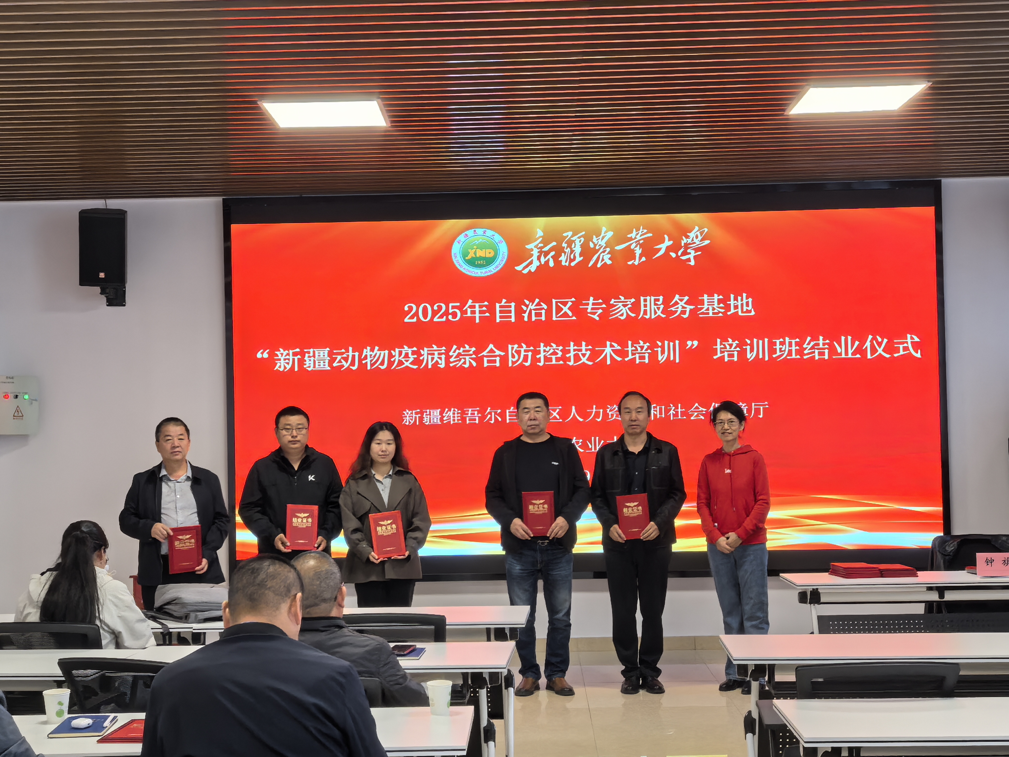 9月22日至26日,由自治区人力资源和社会保障厅厅主办、新疆农业大学承办的2025年自治区专家服务基地活动“新疆动物疫病综合防控技术培训”在新疆农业大学第一动物医院培训基地成功举办。来自南北疆各地州动物疫病预防控制中心、畜牧兽医站、农业农村局等单位的25位业务骨干齐聚一堂,来自新疆农业大学、中国农业科学院特产研究所、新疆畜牧科学院兽医研究所、乌鲁木齐市动物疫病预防控制中心等8位专家完成专业培训工作。