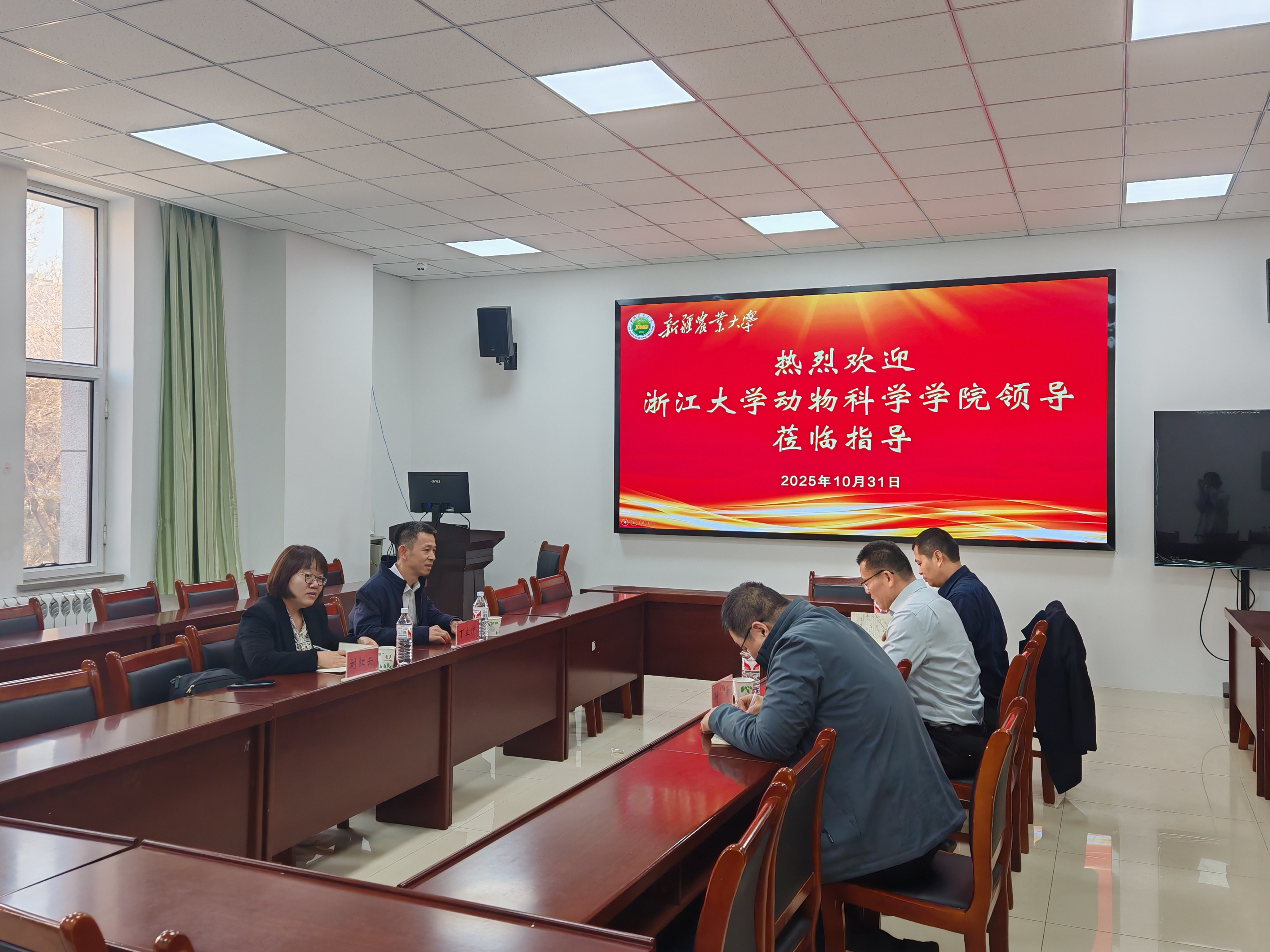 为进一步推动学科高质量发展,加强校际交流合作,近日,浙江大学动物科学学院党委书记兼副院长丁立仲、动物科学学院教授兼联合研究中心主任刘红云一行莅临新疆农业大学动物医学学院,就学科建设相关工作开展专题指导座谈。新疆农业大学动物医学学院院长郭庆勇、副院长付强、王华南(浙大援疆)参加座谈。