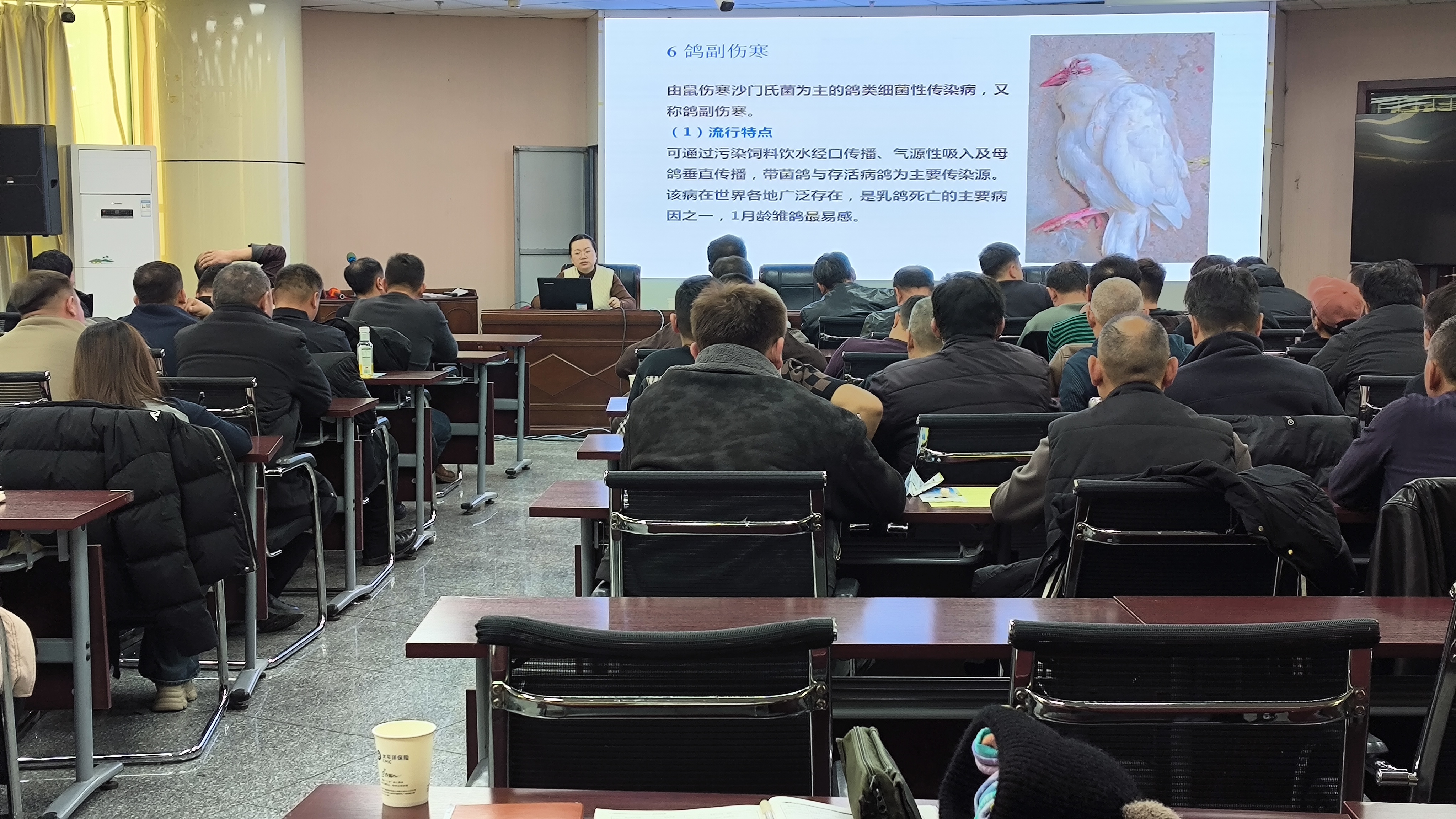 12月16日上午,学院副院长付强、刘英玉教授及马雪连副教授带领的动物保健与畜产品质量安全团队成员蒋倩、谭杨抵达培训现场。培训现场座无虚席,副院长付强与刘英玉教授分别围绕奶牛养殖关键技术要点展开授课。其中,副院长付强针对牛羊病毒病防控讲解了病毒病的流行特点、诊断方法及防控策略;刘英玉教授则以沙门氏菌的危害和防控为题进行讲授,深入剖析了常见细菌病的致病机制、临床症状与科学用药方案,内容兼具专业性与实用性,让在场基层兽疫和养殖户收获满满、受益匪浅。