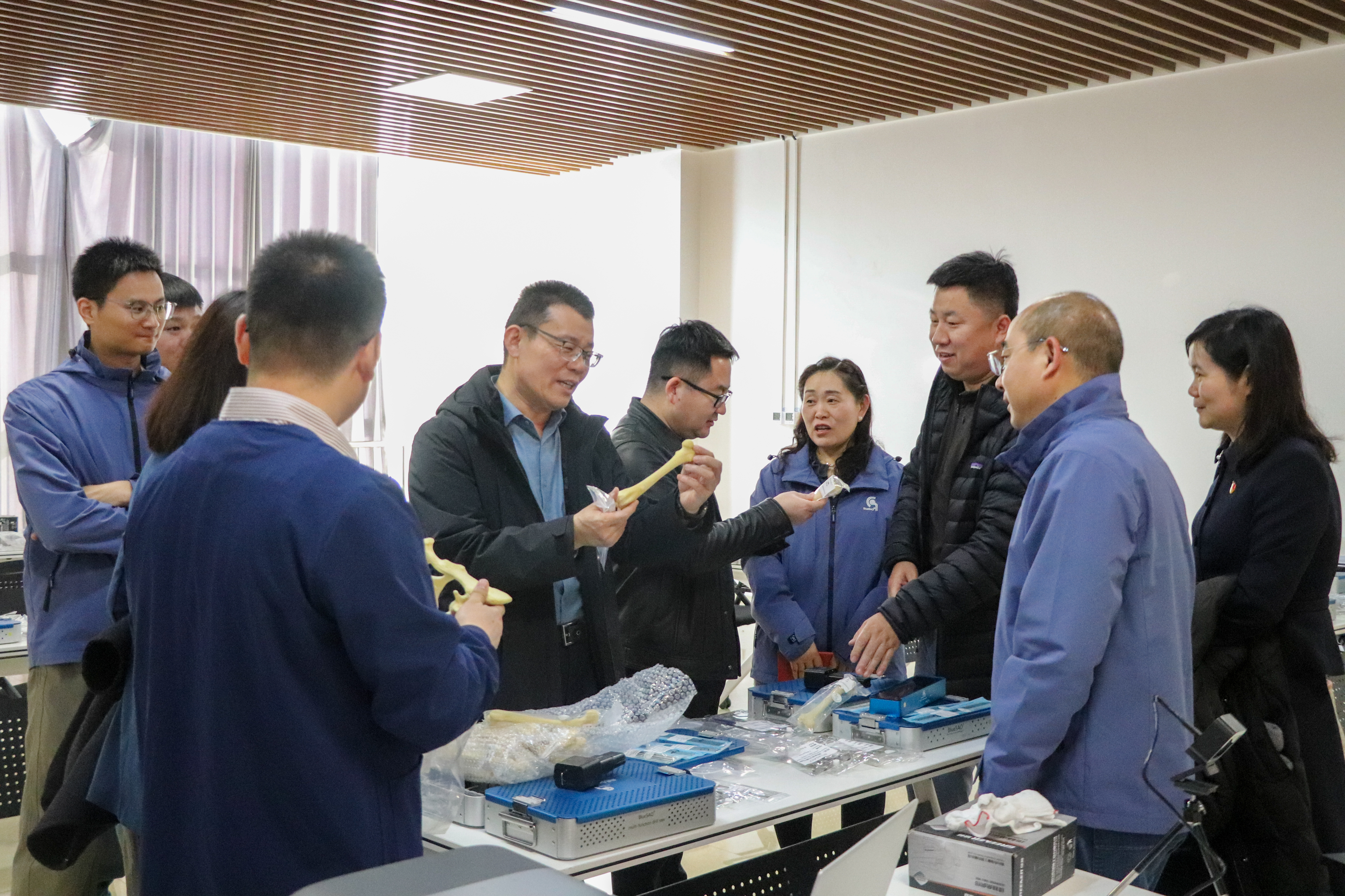 在核心捐赠环节,张骊峰总经理向郭庆勇院长递交捐赠牌,郭庆勇院长代表学院向安徽佰陆颁发捐赠证书,双方代表合影定格这一暖心时刻。新疆农大动物医学学院副院长张伟紧接着展开技术应用展望分享,详细讲解了这批骨科设备在临床教学、实践实训中的具体应用场景与教学提升价值,让在场师生对设备的落地使用充满期待。