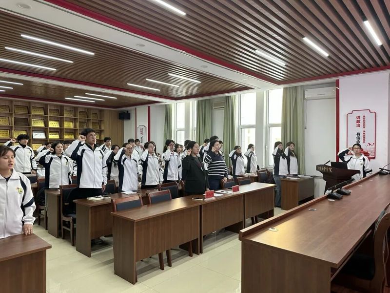紧接着,全体团员高举右拳,重温入团誓词,铿锵誓言彰显青春担当。